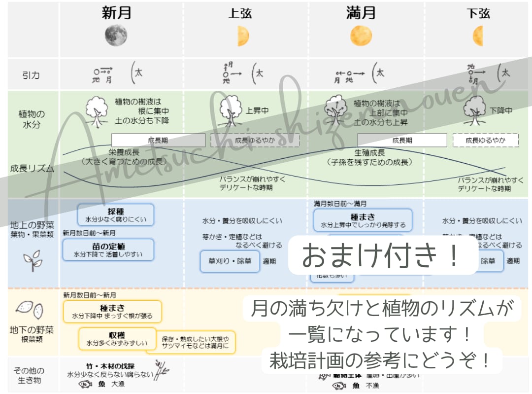「月の満ち欠けと植物のリズムの農作業一覧」