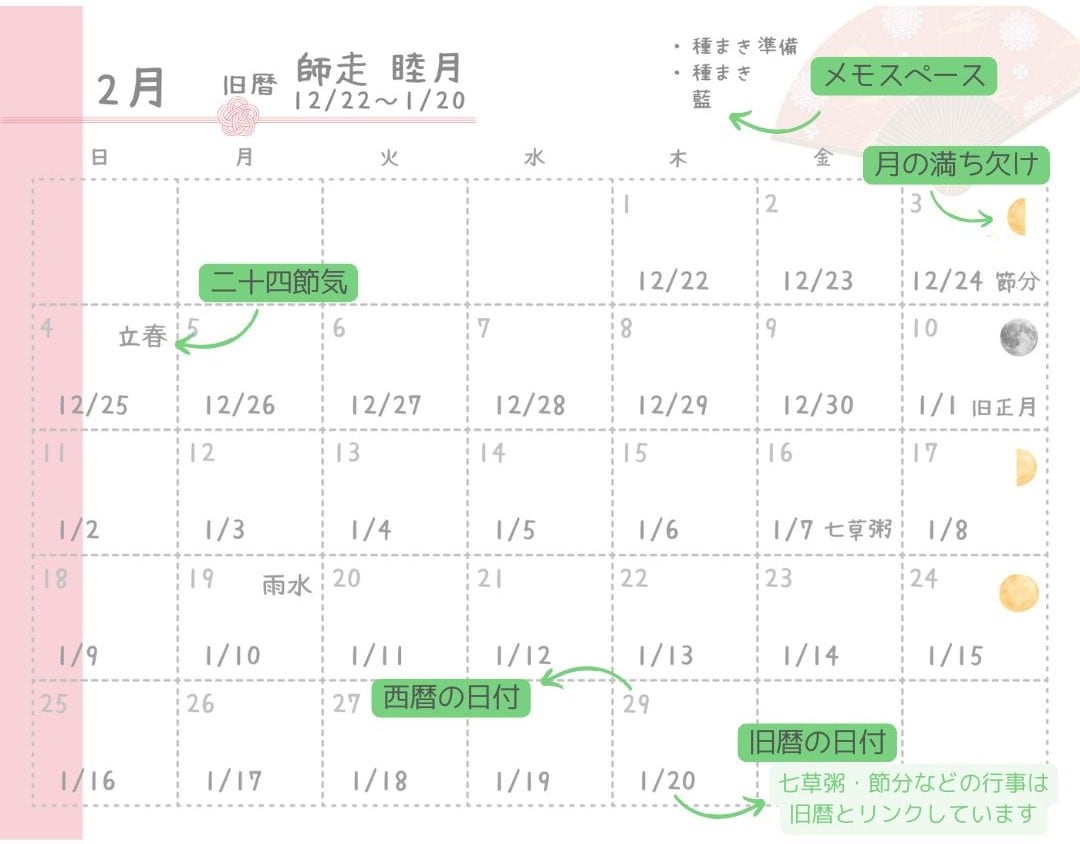 ・2026旧暦カレンダー 1~12月分 …12ページ